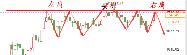1、 我前面几篇文章给大家提到的头肩顶形态,右肩在1745附近,目前右肩可以初步判断成立,毕竟从1745附近跌了40美元,有关注过孙策老师文章的应该都有抓到这波利润,目前价位处于1720附近,思路暂时不去改变,1745下方看空,上破右肩1745我们再去讨论行情反转。笔者孙策理财指导 sclc415 可以一起交流学习。