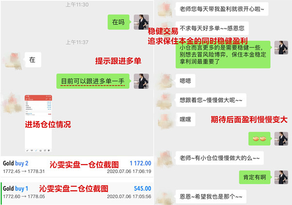 针对实盘提供一对一免费金油交易指导,包括实时单子进出场的提示,技术把控,资金仓位配比,风险控制等……有需要可以加入实盘指导。另外可以针对非实盘可以提供付费指导,收费根据资金量大小收取每单利润百分比,有需要可以具体了解。