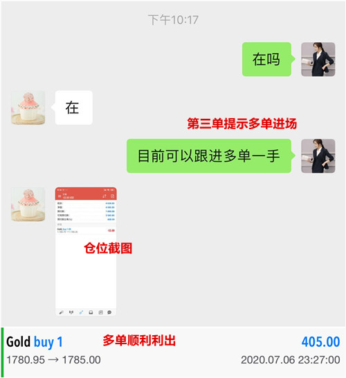 第二单,金价触及1779阻力后回撤至1775附近给到的多单进场,单子比较的激进,但是止盈止损设置好,也就没什么大的问题。