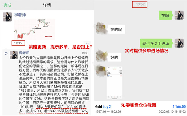 针对实盘提供一对一免费金油交易指导,包括实时单子进出场的提示,技术把控,资金仓位配比,风险控制等……有需要可以加入实盘指导。另外可以针对非实盘可以提供付费指导,收费根据资金量大小收取每单利润百分比,有需要可以具体了解。
