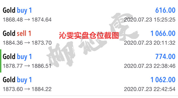 周四的交易开始顺利起来,早间在1868的多单先在1874附近利出,午间金价到达1884高点附近比较激进的给到空单进场,黄金而后整理回撤1873获利出;午后的两单多单也就是在我们计划中,利出也就在意料之中,没有太大的意外,相较于前几日的交易顺利多了。