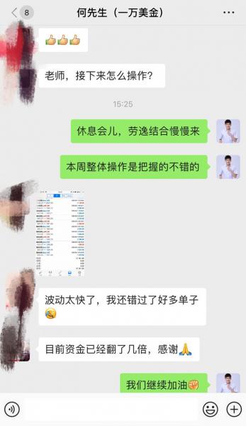 如果你想在投资市场上与我稳健前行,可与我取得联系。黄金原油每天带单指导,欢迎各位咨询,加入一对一指导,在指导中学习技术,在操作中稳健获利,实现投资真正的价值。