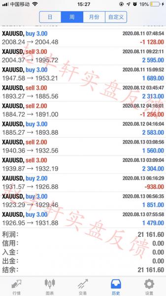 交易做的好不好,以结果说话,以事实说话,本周行情跌宕起伏,实盘目前收获21161美金,操作上有亏有赚,要稳得住止损的痛心,才等的来胜利的曙光,我们交易有理有据,给实盘一个完美交代,如果你目前还是在亏损当中,可以找到我,带你东山再起,实现真正的财富自由,这才是我们投资的初衷!