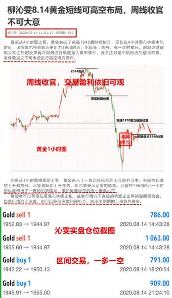 周五收官不出意外的话就是以震荡走势收官了,我们午间在52附近空,55附近补仓空,均在午后到达1944附近自动止盈出局;第二单的话就是到达1945-42附近给到的多单,晚间最终在1955利出,两单总计获利17美金,以此作为收官,没有遗憾了。