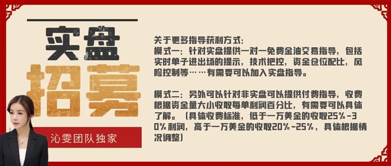 针对实盘提供一对一免费金油交易指导,包括实时单子进出场的提示,技术把控,资金仓位配比,风险控制等……有需要可以加入实盘指导。另外可以针对非实盘可以提供付费指导,收费根据资金量大小收取每单利润百分比,有需要可以具体了解。