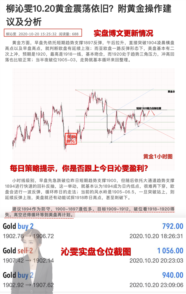 去回顾这天的交易,首先,日内在1902布局多单,午后在1906小利出局!第二单就是反手直接在1907给到空单进场,虽说进场后金价冲高,但是耐心持有,金价在我们预期中,最终晚间在1902成功利出!最后一单反手在1902进场多,金价的一波上涨直接给到盈利出!