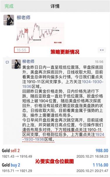 针对实盘提供一对一免费金油交易指导,包括实时单子进出场的提示,技术把控,资金仓位配比,风险控制等……有需要可以加入实盘指导。另外可以针对非实盘可以提供付费指导,收费根据资金量大小收取每单利润百分比,有需要可以具体了解。(具体收费标准,低于一万美金的收取25%-30%利润,高于一万美金的收取20%-25%,具体根据情况调整)