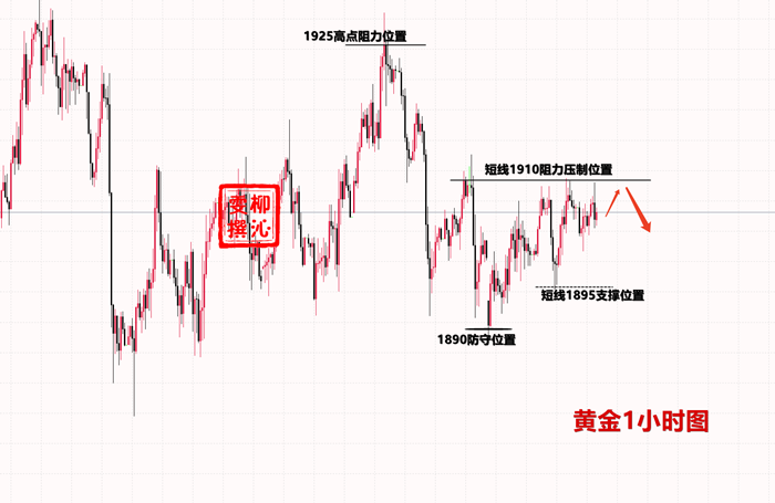 回到我们的行情,黄金从技术面来看,连续的多日横盘震荡,价格更多是对上周四大跌后的一种修正。在形态上价格处于右肩的形成过程中。这也是沁雯连续近期给出空头的主要因素。周二沁雯已经给出在1910区域的空,今日再度给出1910区域参与空头,只有在该区域持有空头耐性的持有,等待行情破位爆发。