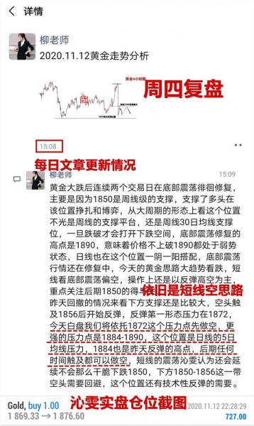 针对实盘提供一对一免费金油交易指导,包括实时单子进出场的提示,技术把控,资金仓位配比,风险控制等……有需要可以加入实盘指导。另外可以针对非实盘可以提供付费指导,收费根据资金量大小收取每单利润百分比,有需要可以具体了解。