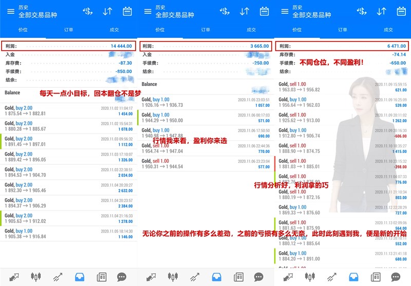 对于上周的一个交易而言,最值得沁雯开心的就是周一的一个获利,单日净利润到达了23美金,不出意外,当日在金价上下波动达150美金的情况下,控制风险尤为重要。这也是延续了上周交易的节奏。那么这11月到目前为止,操作了17单,获利142美金,1-2手交易2.6万美金。