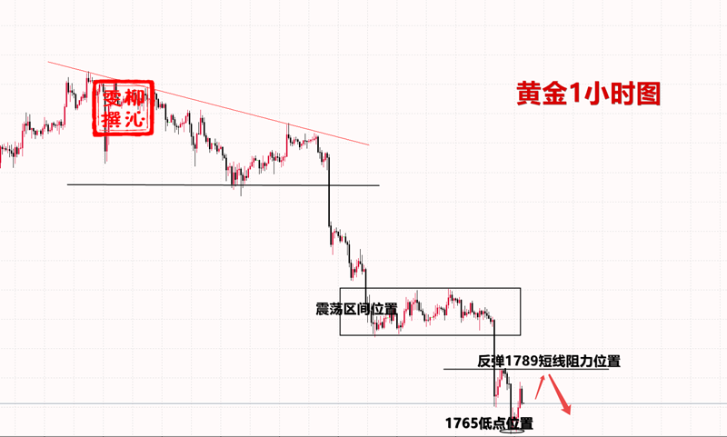 从黄金小时图上看,如果行情要维持反弹之势,那么顶底转换位1774一定不能再次下破,否则破坏涨势,而4小时图低点1773正好充当防守位。那么下方我们在1770的底部多单已经在1777附近落袋为安,多单进场的位置还需要等待观察;所以操作上,欧盘建议继续直接加仓进多,目标1788-1798。