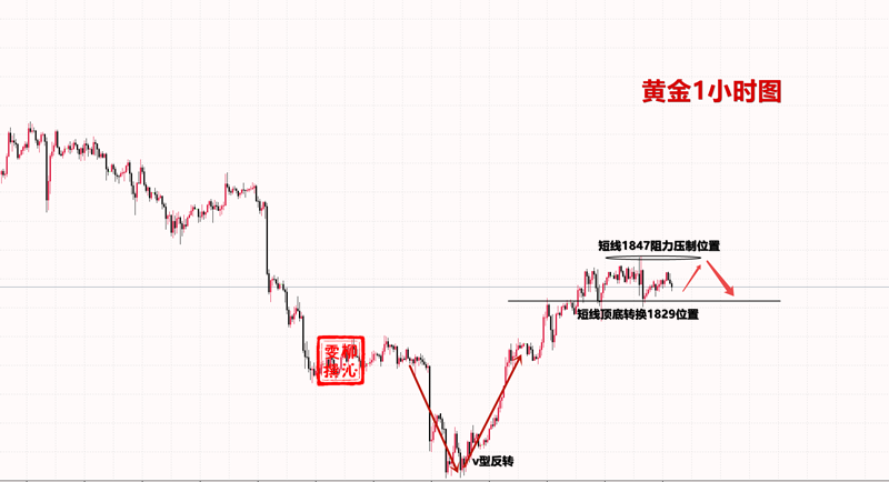 简单回顾下今日交易,午后刚刚给到大家公布策略金价触及1843短线阻力位置给到了1840空单位置,第一目标位置1830到达后小部分利出,第二空单目标位置就放在了1825附近,最终得以成功出局;第二单反手在1825-28附近给到空单进场,到达刚刚1837成功利出,交易两单,盈利拿到了25美金。