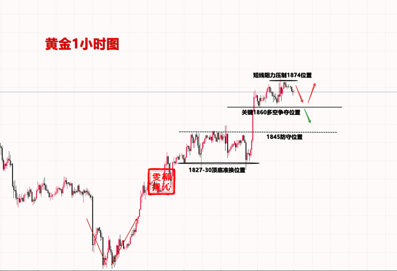 周二的交易两单结束的干脆利落,时间虽然比较久,但是整体还是不错的。晚间美盘前在1862附近按照思路给到了多单的布局,美盘后金价开始蓄力上涨,到达1869附近先落袋为安;第二单,金价多头势头强劲,金价回落至1866附近再次多进场,最终在刚刚到达1874成功利出;两单收获不错,成功拿下今日目标利润。