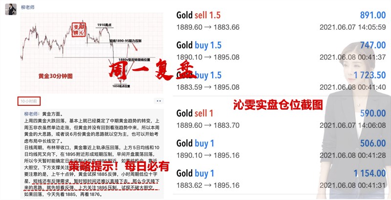 关于周一黄金的交易,只能够说,节奏完美把握!简单回顾下,早间先在1889附近按照我们反弹空思路布局进场,最终在1883拿下短线利出;第二单反手在1883进场多,晚间金价成功如预期开始回升,到达1890再次加仓多,最终在休息前拿下多单盈利,在1895全部了结获利出。