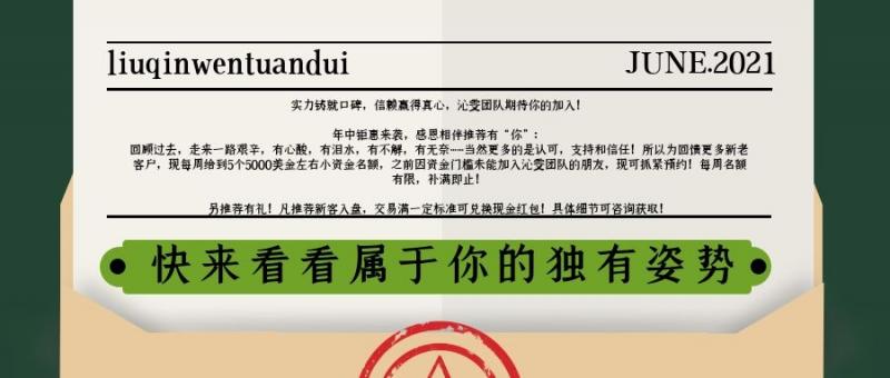 回顾过去,走来一路艰辛,有心酸,有泪水,有不解,有无奈……当然更多的是认可,支持和信任!所以为回馈更多新老客户,现每周给到5个5000美金左右小资金名额,之前因资金门槛未能加入沁雯团队的朋友,现可抓紧预约!每周名额有限,补满即止!