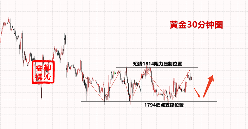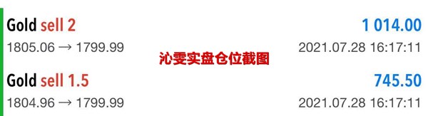 关于交易就显得简单许多,今日金价并没有走出震荡的模式,因此多单空单都可以参与进去,那么沁雯这边的交易目前仅交易一单空单,到达1805-04的空,午后到达1799盈利斩获。交易还在继续,慢慢等待,给点耐心,时间总会给你想要的。