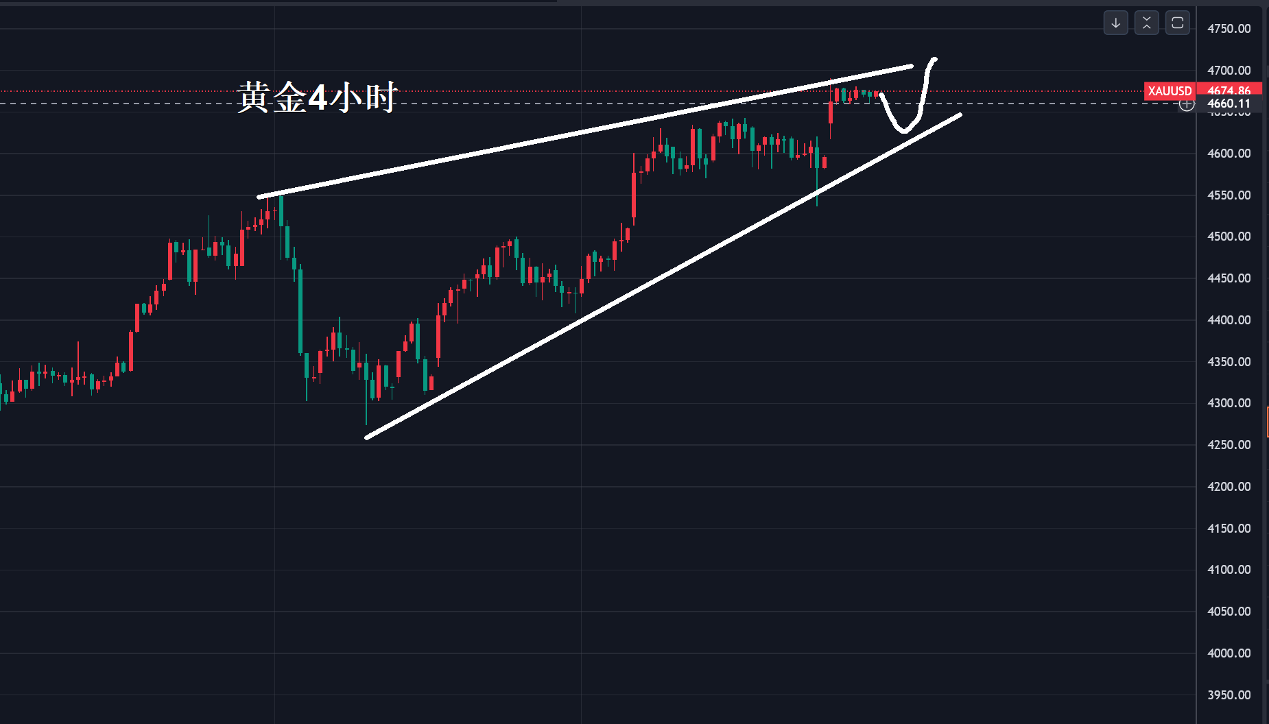 目前,金价跳空高开后高位横盘,周一盘中关键性支撑在4460-40美元的位置,而目前下面支撑处于顶底转换的位置4620-4640的区域之外,跳开高开拉起来然后回踩确认,为后面上升做准备,节奏上并不是极强单边上涨,而是上涨过程中有洗盘动作,往往快速下探为主。