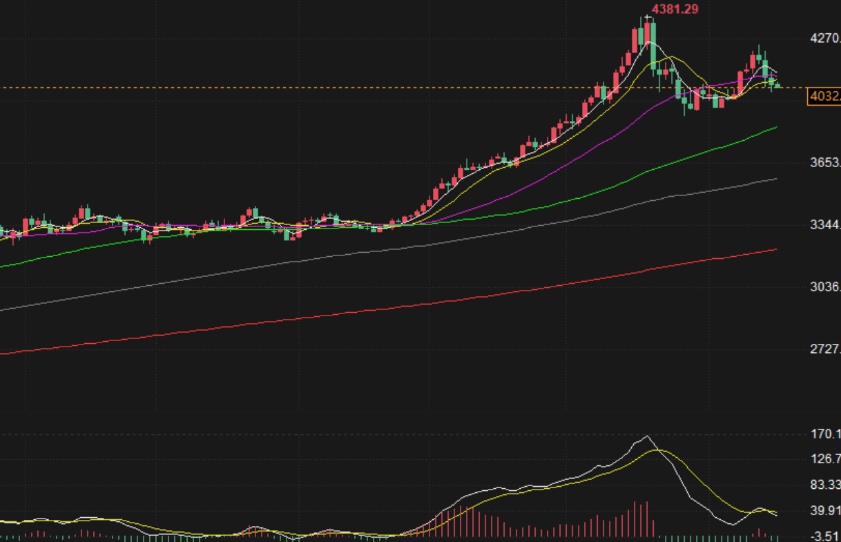操作上:十日均线4075区域空,防守7,失守后见93区域再空一次,目标4005-3976。
