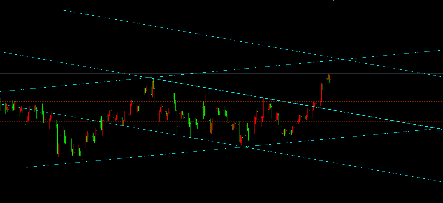 昨天黄金至欧盘弱多信号出现后,一直上涨,晚间两间在4100压制回落4087不破,再次上扬突破4103形成加速上行,最终以一根中阳收盘,从当下来看,短期突破了通道边线,后市延倬去H2的边线位,其次是日图上线及上轨区域,不过经过昨晚的强势上扬,早盘预期先行拉升一下后会走一个修正再次上涨,目前支撑4105和17区域,所以综合得下来得出结论如下: