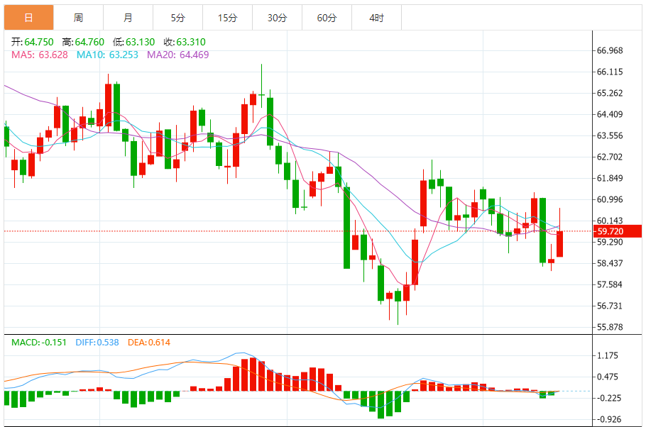 美原油:今日59.85空准60.35下方目标看58.5和58和57.5.