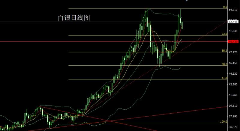 白银:下方37.8的多和38.8的多跟进在42持有昨日50.9的多减仓后止损跟进在51.2持有,今日53.6空,今日53.8下方目标看51.9和51.5和51.3-51.