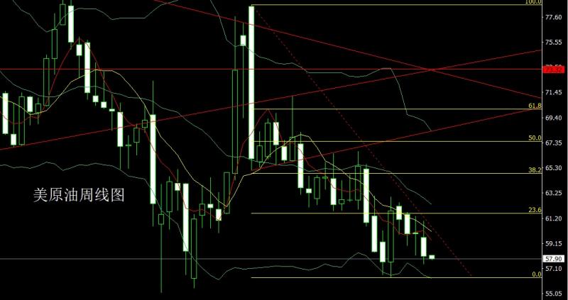 美原油市场上周低开在59.63的位置后行情先拉升给出60.99的位置后行情强势震荡回落,周线最低给到了57.45的位置后尾盘整理,周线最终收线在了58.09的位置后,周线以一根上影线长于下影线的大阴线收线,而这样的的形态收尾后,本周59空止损59.5,目标看58.5和58和57.5,跌破看57-56.6.