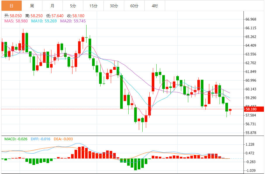 美原油:本周59空止损59.5,目标看58.5和58和57.5,跌破看57-56.6.
