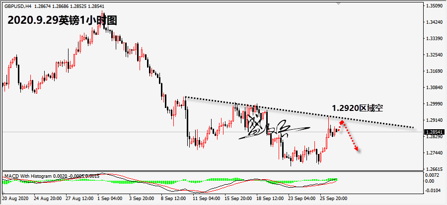 英镑策略:1.2920区域空,止损1.2970,目标1.2770,1.2730