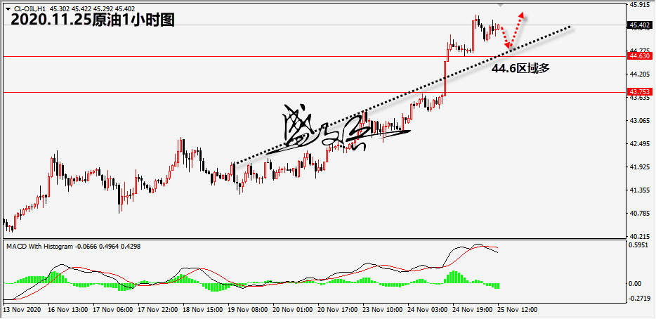 原油仍然表现得非常强势,欧盘价格小幅回撤45一线获得支持上扬。晚盘重点关注美股和美国EIA原油库存数据。