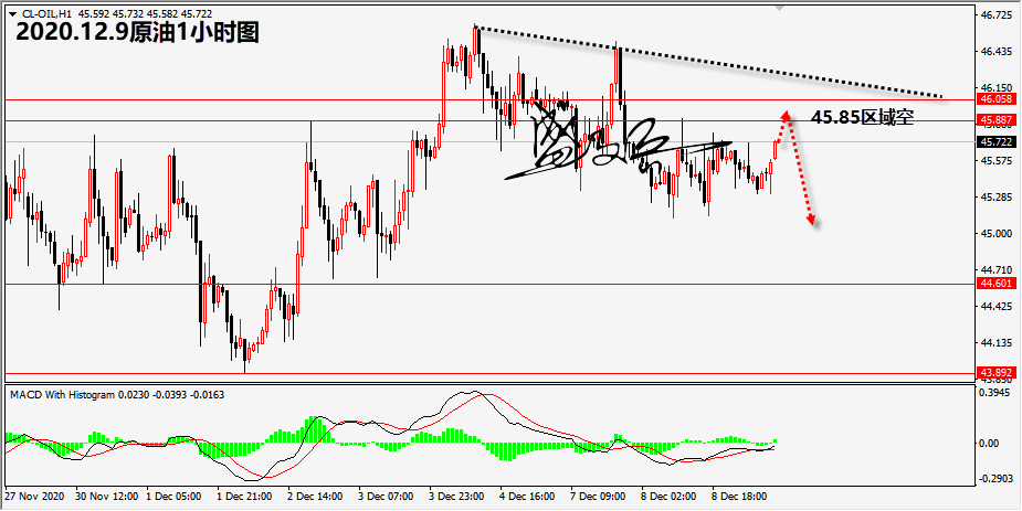 原油策略:45.85区域空,止损46.6,目标44.5,33.7