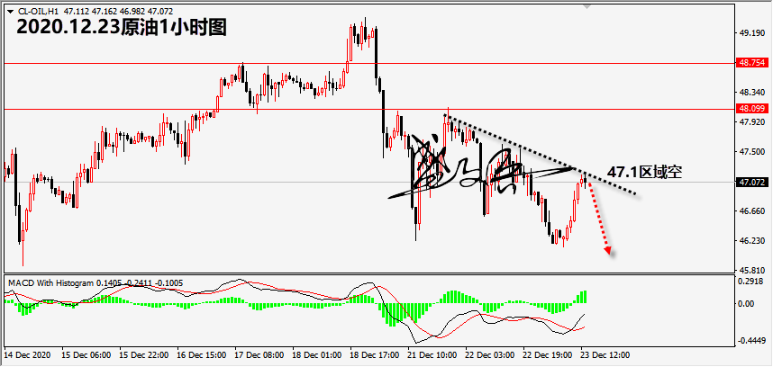 原油刚好符合笔者的预期,价格反抽47.17位置承压,笔者今日明确给在47.1区域参与空头,已经根据笔者策略参与空头者,目前已经开始获利。晚盘重点关注美国EIA原油库存数据。