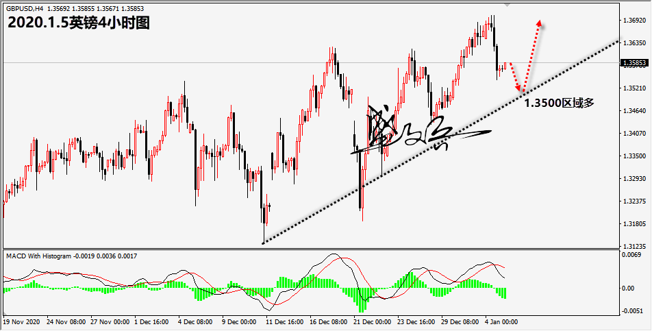 英镑策略:1.3500区域多,止损1.3450,目标1.3610,1.3680