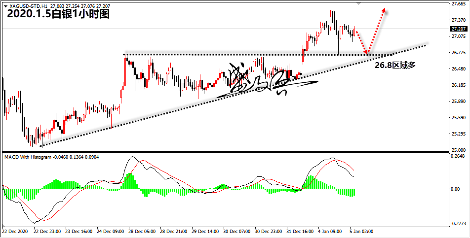 白银策略:26.8区域多,止损26.5,目标27.5,27.8