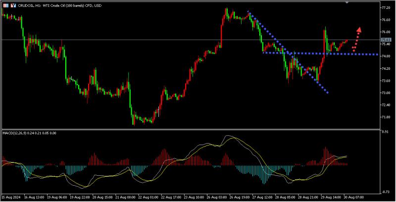 周四油价主要受到利比亚供应中断和伊拉克计划减少产量的消息推动,同时,美国经济数据的上修也缓解了市场对需求前景的担忧。油价上涨超过1美元,而美国原油期货上涨1.39美元。今日原油关注下方1小时支撑位,调整企稳后做多原油。同时,投资者仍需关注即将发布的经济数据,包括美国7月PCE数据和原油钻井数据变动。这些数据将为市场提供关于美国经济健康状况和原油供需平衡的进一步线索。