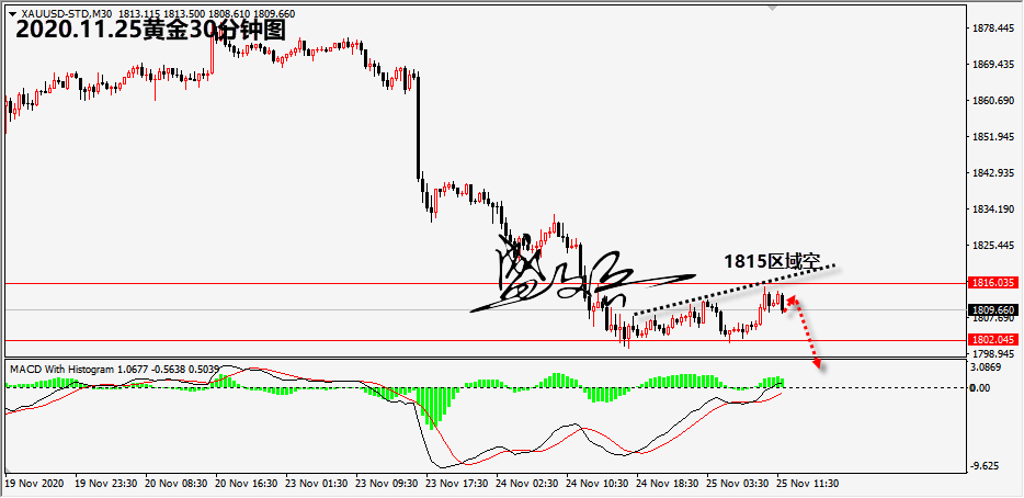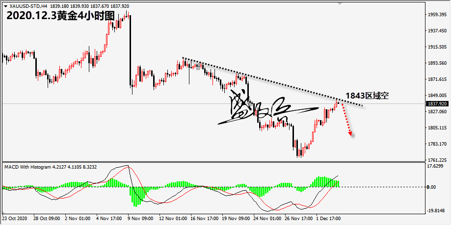 黄金 英国脱欧贸易谈判的三个焦点问题仍然未能解决,脱欧谈判面临破裂的风险,致使欧系货币全面的大跌,美元指数大涨,欧洲股市全面下挫。随着美元指数强劲上扬,黄金的商品特定致使价格一度大幅的下挫。晚盘重点关注美元,美股走势对于黄金的影响。 黄金完全符合笔者的预期,今日笔者明确给出1843区域参与空