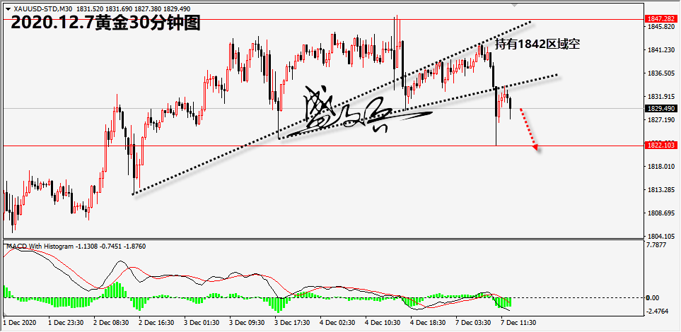 黄金 本周市场焦点是英国脱欧谈判,欧洲央行货币政策会议和美国刺激方案的谈判以及新冠疫苗的使用。据消息称,英国周二新冠疫苗将投入使用,周五美国将投入使用。需要注意的是,近期黄金TF持续的流出,这很大程度上限制了黄金的上涨。 黄金完全符合笔者的预期,在上周五笔者明确给出在1844/7区域参与空头。在
