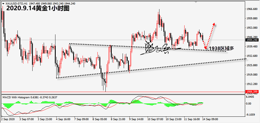 黄金本周宽幅震荡小幅的收高,最高1966.53美元/盎司,最低1906.27美元/盎司,收报于1939.4美元/盎司,涨幅0.34%。本周多空消息交织,黄金继续维持在7月大涨后的高位区间宽幅震荡之中。只是随着时间的推移,震荡修正的区间在逐渐的缩小。 从最近黄金表现来看,金价的上涨一直承受着压力,主要是对需求复苏放缓以及美元