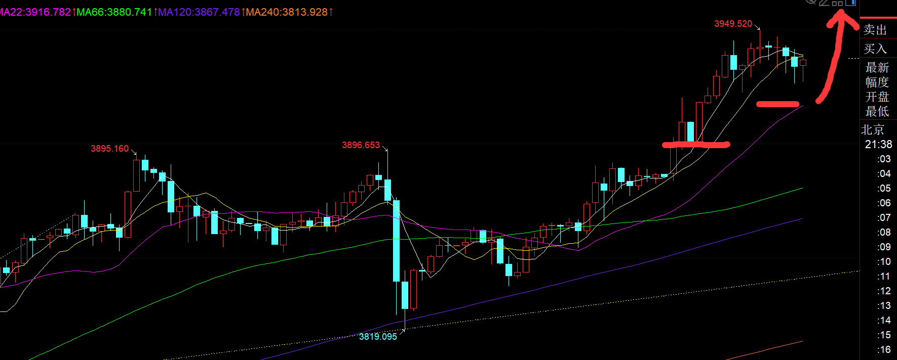 第一,黄金日线级别:周线和月线级别的解读可以参考周视频; 从日线形态看,这轮从3311启动的单边拉升,基本都是依托5均线一路单边拉升,中途出现的修正也只是单阴或高位横盘,还未出现过大的回调,表现十分强劲;那么这种情形下,就要坚持保持顺势看涨不变,继续跟随这波多头,若出现长上影K,且收盘有些脱离5均线,这种形态出现,才可以适当的偶尔看一下回落修正,等触及5日,极限10日企稳则继续回归看涨,本周或很快试探4000关口附近;今日从5均线直接发力上攻,已经拉升接近70米,非常猛,3900基本已经突破站上了,后续就要围绕3900的上方去接着看涨;