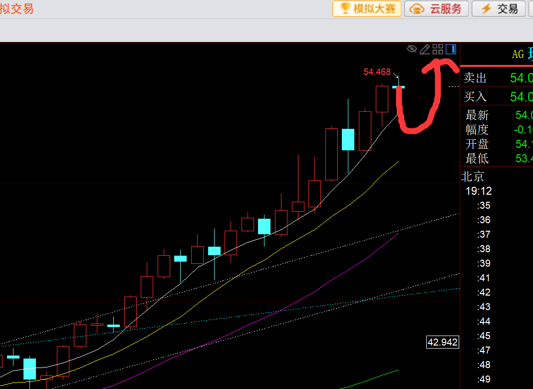 白银方面:它的日线走势和黄金是不相同的,它还没有步入加速拉升阶段,另外今年白银属于单边强势补涨,所以它还是耐心等回踩短期均线继续看涨,先留意53-52.6支撑,强支撑51上,逢低企稳看涨;