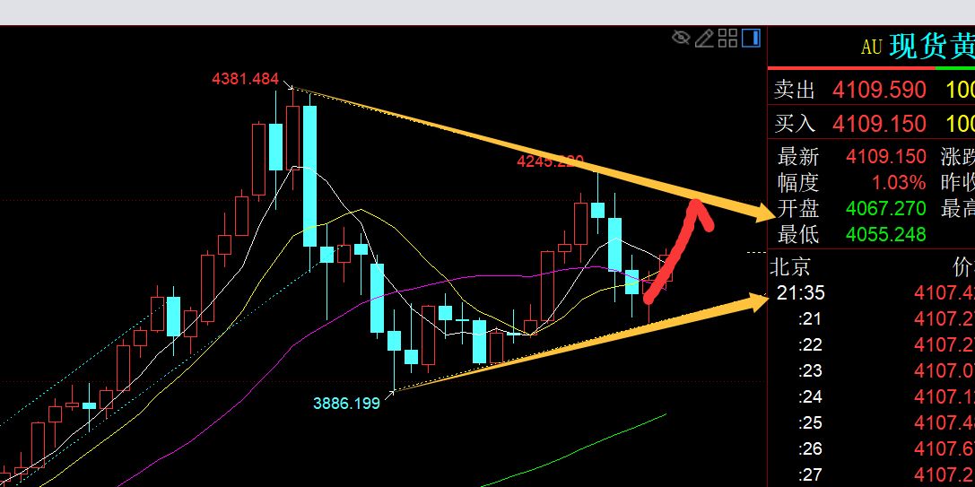 郑氏点银:今日黄金亚欧盘持续拉升,今晚还有二次上涨