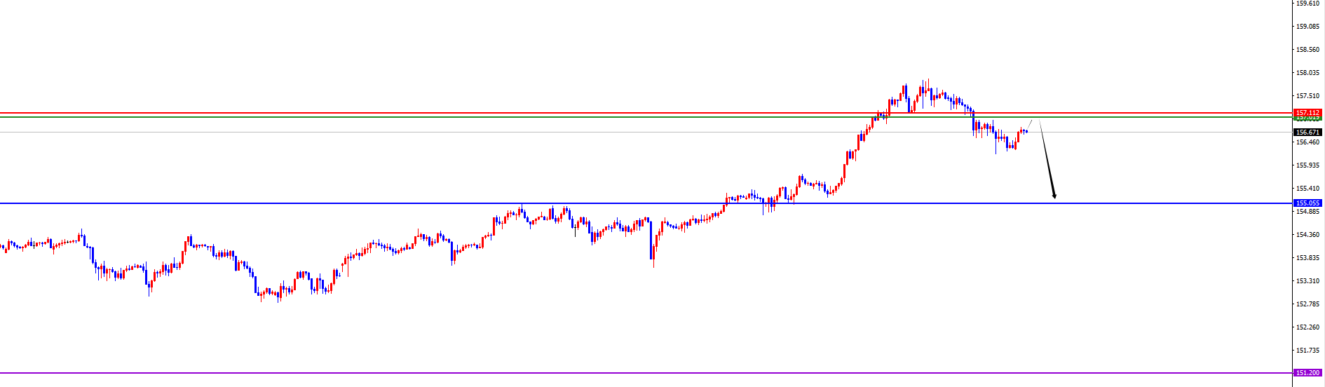 短线分水岭157.00-10区域,价格没有出现反转信号之前维持空