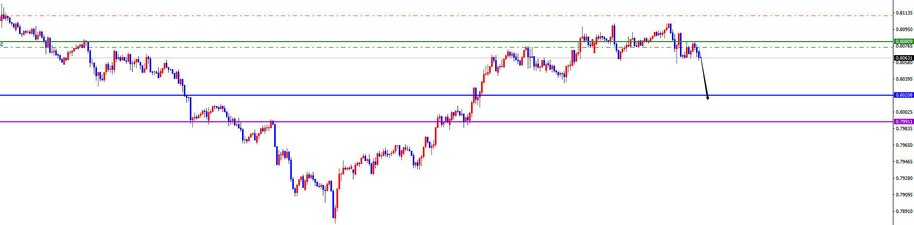 关键分水岭0.8080区域,价格没有出现反转之前先维持空