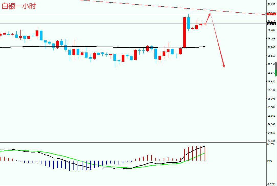 现货白银价格从新高19.64附近大幅下跌回落,创出五年来的新低到11.29附近,随后价格一路反弹上行,创出29.86的新高后展开回落。目前整体价格在MA200上方运行,MACD指标企稳弱势震荡,目前形成震荡下行走势。而前期高点对应的价格26.51成为当前的强压力位,也是短线的多空分界线,价格只要不突破此压力,就有可能继续震荡回落走势。