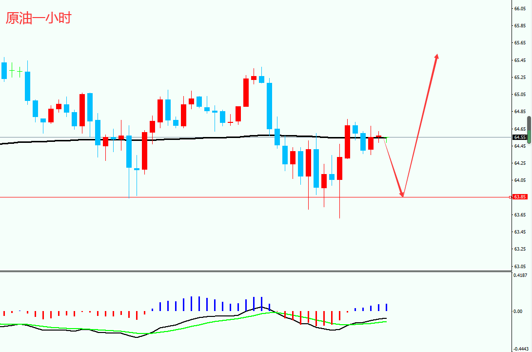 原油价格从前期高点76.87一路承压下行。单边下跌到9.67的新低后开始反弹,当前价格整体在MA200上方运行,MACD指标弱势震荡,属于震荡上涨走势。而前期低点对应的价格63.85成为现在的强支撑位。也是后市的多空分水岭。如果此支撑不被有效突破,后市会继续展开反弹,可尝试做多。