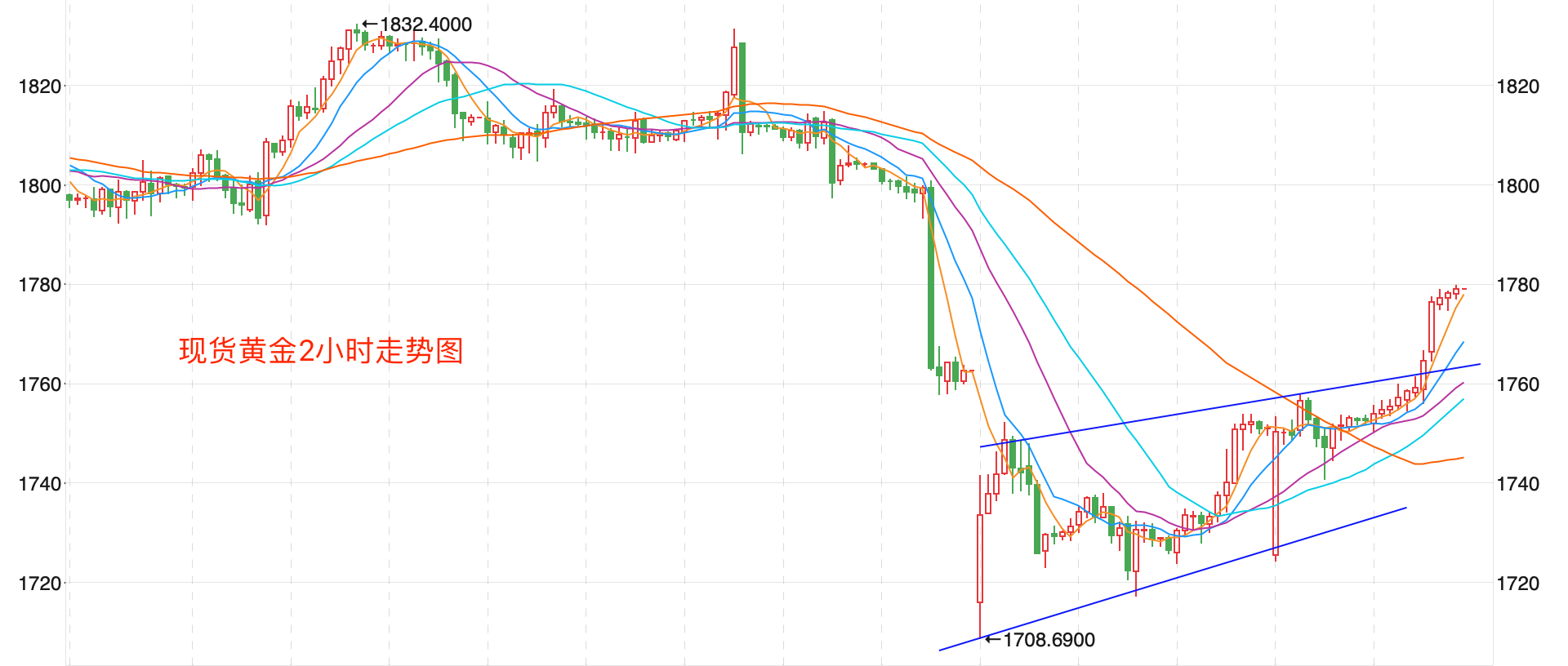 首先,美国公布的经济数据7月进口物价指数月率为0.3%,低于市场预期的0.6%和前值1.0%;年率为10.2%同样地狱市场预期的10.5%和前值11.2%的表现。其次,重磅数据并造成美指最终大跌的是6月密歇根大学消费者信心指数初值为70.2,低于市场预期的81.2的表现,数据走势不利美元的表现,利多于金银的反弹走势。