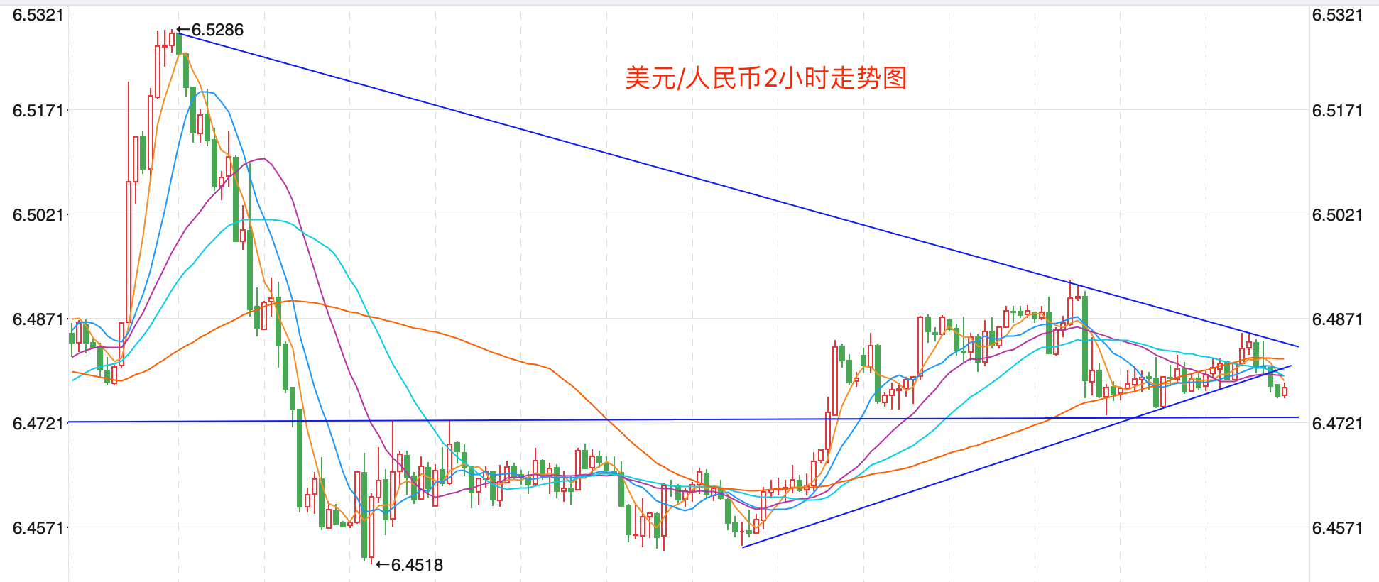 离岸价前期自2020年5月高位7.1964开启下跌走势,盘中跌破MA200均线的关键支持而下行走低;2021年5月触及6.3477点低位后开始震荡走高。当前行情日内有下跌测试6.47支持的趋势。