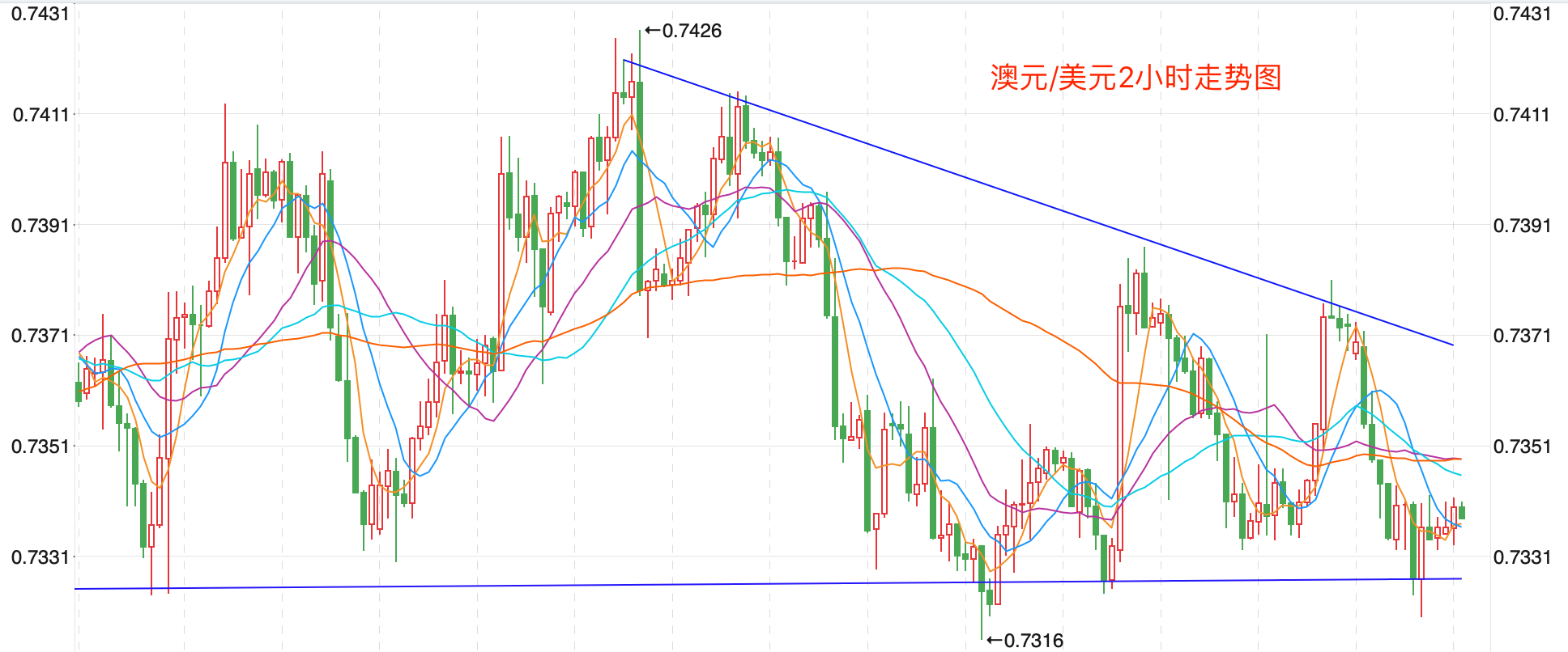 前期自2020年3月底企稳0.56618低点开启上涨走势;盘中突破了MA200均线的关键阻力而上行走高;2021年2月触及0.80072点高位后开始震荡走低。当前行情有探底反弹延续向上的震荡走势。
