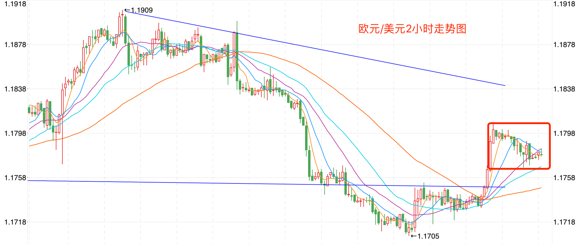 前期自2020年3月底企稳1.0635低点开启上涨走势;2021年1月触及1.23495点的高位后持续震荡下行。当前走势是回落企稳1.17点的中长期多空分水岭的支持后,二次反弹走高触顶后中长期处在回落调整的下行走势中;汇价整体运行在MA200均线下方形成调整趋势。当前行情日内企稳1.1750继续反弹向上的趋势。