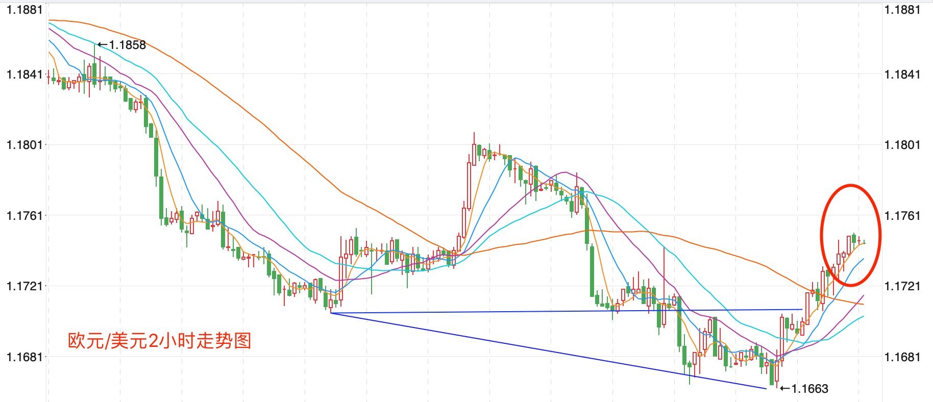前期自2020年3月底企稳1.0635低点开启上涨走势;2021年1月触及1.23495点的高位后持续震荡下行。当前走势是回落企稳1.17点的中长期多空分水岭的支持后,二次反弹走高触顶后中长期处在回落调整的下行走势中;汇价整体运行在MA200均线下方形成调整趋势。当前行情日内突破1.18点阻力的反弹趋势。