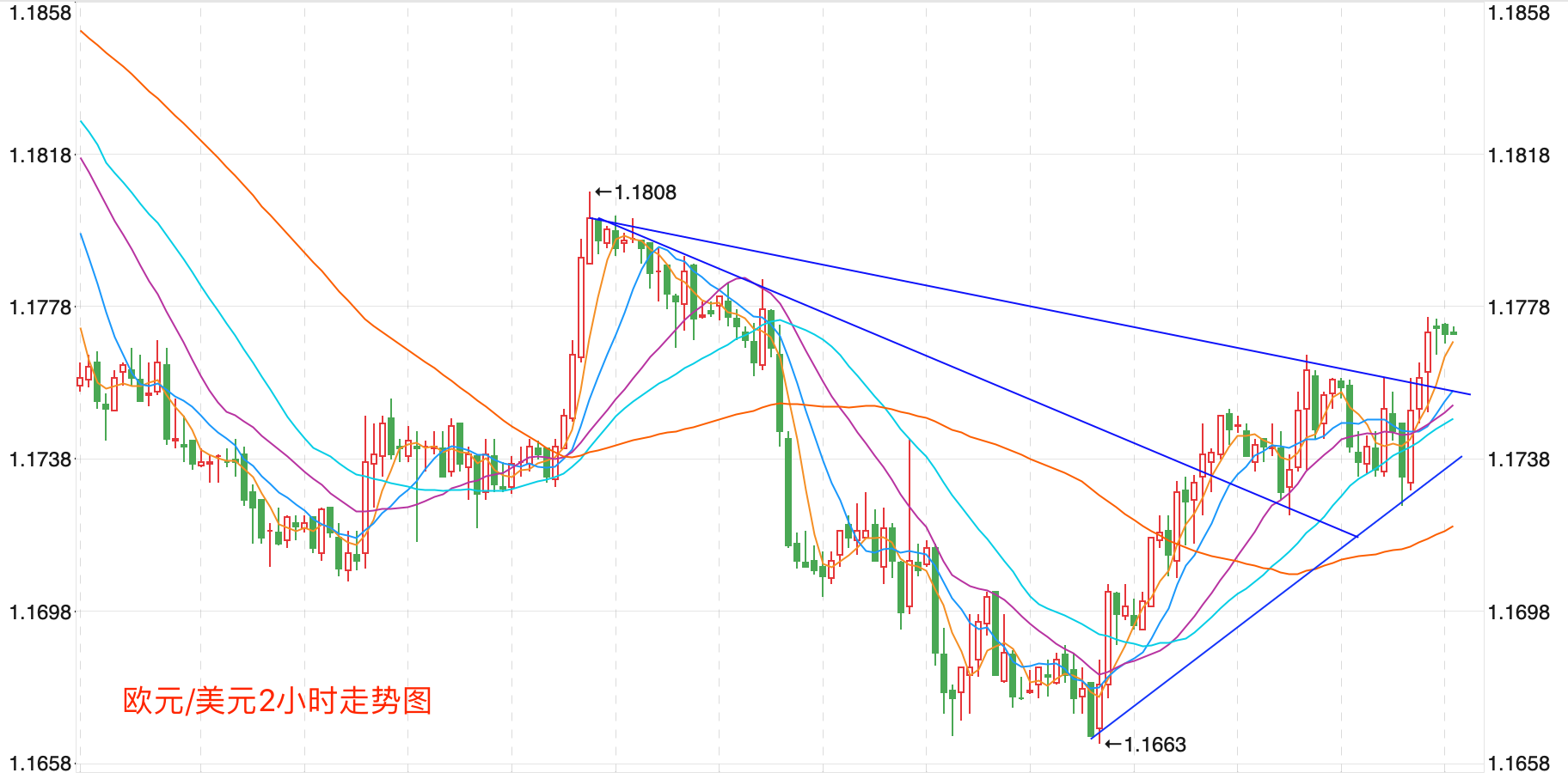 前期自2020年3月底企稳1.0635低点开启上涨走势;2021年1月触及1.23495点的高位后持续震荡下行。当前走势是回落企稳1.17点的中长期多空分水岭的支持后,二次反弹走高触顶后中长期处在回落调整的下行走势中;汇价整体运行在MA200均线下方形成调整趋势。当前行情日内突破1.18点阻力的反弹趋势。